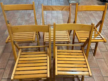 Set di cinque sedie pieghevoli in legno, perfette per ogni occasione. - Struttura robusta in legno. - Design classico e funzionale. - Facili da riporre quando non in uso.