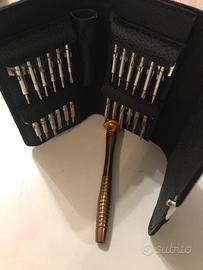 Set tascabile borsello similpelle di giravite 24 pezzi piu giravite magnetico per accogliere le punte. Borsellino con chiusura a clip. Ideale per un regalo, sempre utile…