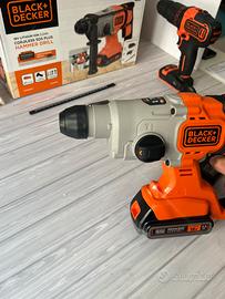 Set Black+Decker composto come da foto da: - tassellatore sds+ 18v a batteria e accessori (arresto di profondità e maniglia) mod: BCD900 - trapano avvitatore a percussione 18v a batteria mod: BDCHD18 - 1 caricabatterie mod: SSC-200100EU originale Black+Decker - 1 batteria Black+Decker power connect 18v Lithium 2.0 ah compatibile con entrambi gli utensili - borsa morbida Altre foto disponibili in pvt. Nuovo MAI USATO. SOLO CONSEGNA A MANO SU ROMA zona Casilina/Togliatti