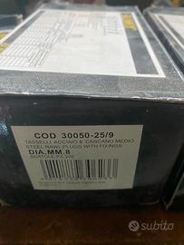 Vendo set completo di tasselli in acciaio Blinky da 8 mm, nuovi e sigillati, ideali per fissaggi su calcestruzzo e muratura (rawl plugs with fixings). Include 5 scatole per un totale di circa 800 pezzi: