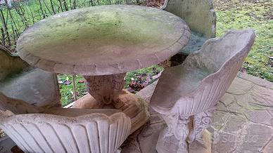 Vendo bellissimo salotto da giardino composto da tavolo e 4 sedie in cemento intarsiato.