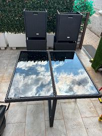 Vendo set da giardino composto da tavolo con piano in vetro e 4 sedie in rattan sintetico colore nero piu cuscini e Velo copri Tavolo. Le sedie sono impilabili/salvaspazio (si incastrano sotto il tavolo), ideali per balcone, terrazzo o giardino. ✔️ Struttura solida e resistente ✔️ Piano in vetro facile da pulire ✔️ Design moderno ed elegante ✔️ Perfetto per 4 persone Condizioni buone, usato ma tenuto bene (come da foto). Vendo per inutilizzo. 📍 Ritiro a mano