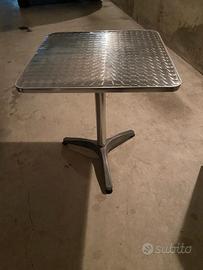 tavolo quadrato 60x60 con gamba centrale e tre sedie in alluminio da esterni.