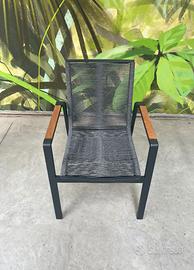 Materiale: Struttura in alluminio verniciato a polvere. Seduta e spalliera in corda. Braccioli con superficie in legno teak