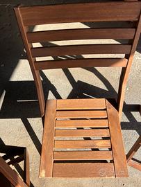 Set tavolo allungabile/pieghevole (max 6 persone) e 4 sedie pieghevoli da esterno. Salva spazio, ideale per balcone. Legno marrone scuro Prezzo non trattabile