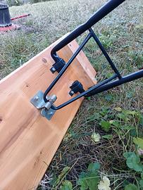 1 tavolo e 2 panche con gambe richiudibili, con gancio di sicurezza. Usati poche volte.
