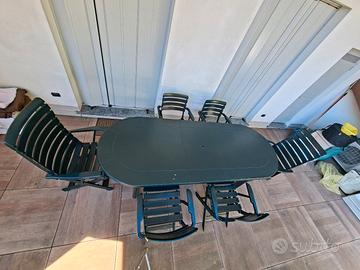 Vendo set da giardino completo Rovergarden in resina, colore verde, composto da: Tavolo allungabile con foro per ombrellone (184*90 arriva a 234cm) 4 sedie pieghevoli 2 poltrone reclinabili con braccioli Set completo, pratico e subito utilizzabile, ideale per terrazzo o giardino. Le sedute sono pieghevoli, quindi facile da gestire anche in spazi ridotti. Condizioni buone: presenta normali segni di utilizzo, ma è strutturalmente perfetto e ancora molto solido. 👉 Vendo solo in blocco 👉 Ritiro a mano Lo vendo perché poco utilizzato. Prezzo: 300€ trattabili