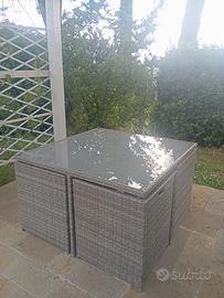 Vendo set da giardino come in foto composto da: -tavolo 118x118, da n. 8 posti; -sedute in totale n. 8. Sedute estraibili.