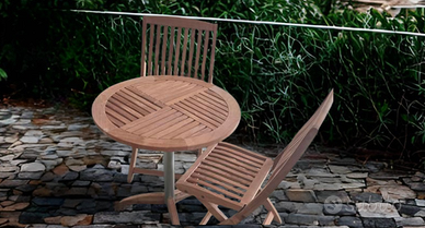 Vendo elegante set da esterno in legno Tanjaya composto da tavolino rotondo e 2 sedie pieghevoli in legno. Ideale per giardino, terrazzo o balcone.
