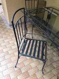 Tavolo in ferro battuto e piano in cristallo e 4 sedie in ferro battuto. Ideale per terrazzo o giardino Misure tavolo: 160x100, h 73