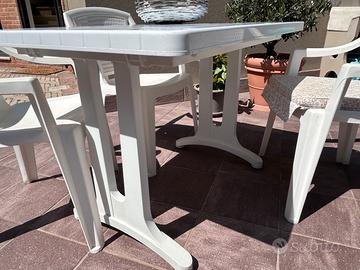 come nuovo, mai utilizzato, con 4 sedie impilabili non più nuove,