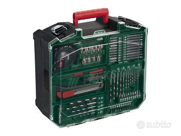 Set di trapano completo che include 2 batterie, 1 caricabatterie e una vasta gamma di accessori