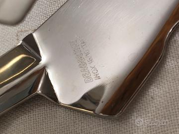 Set di utensili da cucina in acciaio inox composto prevalentemente da articoli DeAgostini Inox, con aggiunta di pinza lunga da barbecue. Il lotto include: Pinza BBQ 36 cm (non DeAgostini) Pinza cucina 24 cm DeAgostini Pinzette tipo chef “Pinze Chef by CIZ” Spatola larga forata per pesce DeAgostini (25 cm) Cucchiaio grande inox DeAgostini (25,5 cm) Materiale: acciaio inox Condizioni: buone, presenti normali segni d’uso (aloni e piccoli graffi superficiali), perfettamente utilizzabili Set pratico e coordinato, ideale per cucina quotidiana, barbecue e impiattamento. Venduti in blocco come da foto.
