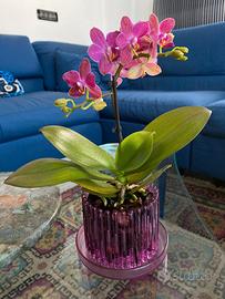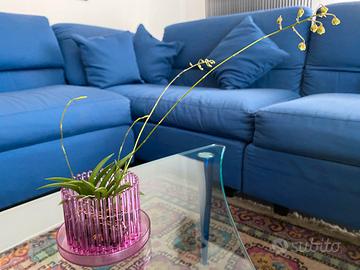 Orchitop Small rosa trasparente è un set costituito da un vaso per orchidee o altre piante di piccole dimensioni, provvisto di sottovaso, che si fissa al vaso con un sistema ad incastro. Il sistema a paletti verticali consente lo sviluppo delle radici, come in natura, lascia passare la luce e fornisce un'areazione ottimale del substrato, evitando muffe e marciume dell'apparato radicale. Robusto e durevole, è un modello brevettato made in Germany e realizzato in policarbonato alimentare. Dimensioni vaso Small: diametro circa 10 cm, altezza circa 8 cm, spazio fra i paletti: 3 mm. Dimensioni sottovaso Small: diametro circa 13 cm, altezza circa 2,2 cm. Nuovo mai usato.