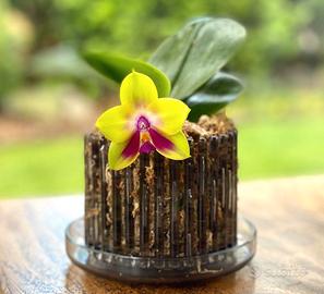 Orchitop Small grigio trasparente è un set costituito da un vaso per orchidee o altre piante di piccole dimensioni, provvisto di sottovaso, che si fissa al vaso con un sistema ad incastro. Il sistema a paletti verticali consente lo sviluppo delle radici, come in natura, lascia passare la luce e fornisce un'areazione ottimale del substrato, evitando muffe e marciume dell'apparato radicale. Robusto e durevole, è un modello brevettato made in Germany e realizzato in policarbonato alimentare. Dimensioni vaso Small: diametro circa 10 cm, altezza circa 8 cm, spazio fra i paletti: 3 mm. Dimensioni sottovaso Small: diametro circa 13 cm, altezza circa 2,2 cm. Nuovo mai usato.