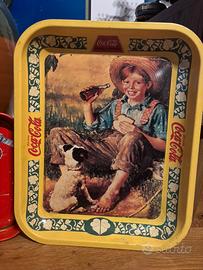 - Vassoio con bambino e cane, con scritta Coca-Cola sui bordi.