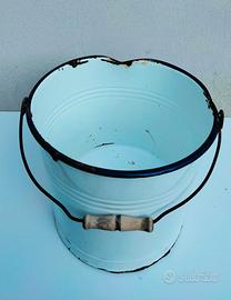 Set Vintage Smaltato Bianco e Blu – Ideale per Fioriere Originali