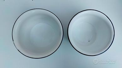 Vendesi set di oggetti d'epoca (anni '50) in metallo smaltato bianco con caratteristico bordo blu.