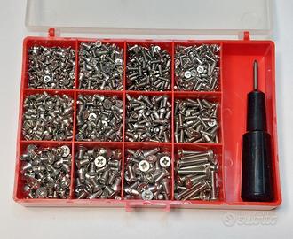 B)Set da 1200 Viti + 400 Dadi Inox Testa Svasata M3mm in scatola porta minuteria