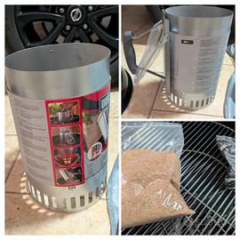 Vendo barbecue Weber Compact Kettle, il re dei barbecue a carbone, causa inutilizzo. Il barbecue è realizzato in lega di acciaio smaltato ultra-resistente ed è in condizioni eccellenti. Il pacchetto include tutto il necessario per iniziare: Barbecue: Modello iconico con griglia di cottura Gourmet BBQ System (GBS), sistema di pulizia One-Touch in acciaio inox. Ciminiera d’accensione Weber Rapidfire (7416): Il modello grande da 32 cm. Indispensabile per accendere le bricchette in 15 minuti senza sforzo e senza liquidi infiammabili. Custodia Originale Weber: In tessuto leggero e traspirante, resistente all'acqua e con cinghie di fissaggio. Protegge il BBQ da pioggia, polvere e raggi UV (Dimensioni: 58,5 x 72,5 x 91 cm). Perché scegliere questo modello: Dimensioni generose: Il diametro da 57 cm permette di cucinare comodamente per 8-10 persone. Versatilità: Grazie alle valvole di aerazione e al termometro integrato, puoi fare grigliate dirette (bistecche, salsicce) o cotture lente/affumicature (pulled pork, costine). Qualità Weber: Materiali progettati per durare anni all'esterno senza arrugginire. Condizioni e Dettagli: Stato: mai usato! Due sacchi di carbonella, sacchetto di cubetti accendifuoco e trucioli per affumicatura inclusi!!! Ritiro: Solo ritiro a mano zona Brescia data la dimensione dell'oggetto. Disponibile per qualsiasi visione. Un set perfetto per chi vuole passare al livello successivo nel mondo del grilling.