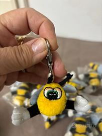 17 apine nuove di peluche morbido con un gancio in metallo per poter essere appese e agganciate alla fettuccia che avvolge la copertura in stoffa sul vasetto di miele piccolo o grande che puoi unire per formare una splendida bomboniera, o un dolce omaggio da regalate a chi ama il miele. Oppure puoi darle in regalo ad una festa di compleanno ecc. si prestano a tante idee…tutto nuovo !!!Riportano a lato un’etichetta che si puó facilmente tagliare senza arrecare danno per ottenere il prodotto privo di sponsor ( questo il motivo per cui il costo è così basso). Se le apine sono poche o troppe posso comporre il set come vuoi ( ne ho disponibili 33/34 )