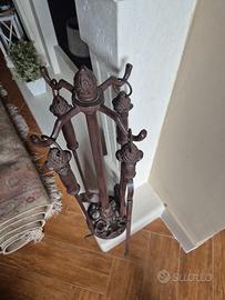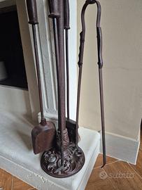 Set 4 pezzi per camino in ferro battuto, mai utilizzato