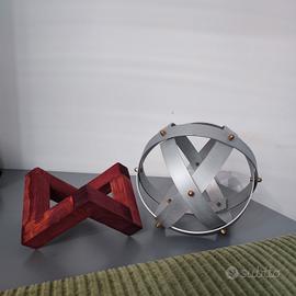 Diametro 22 cm, elementi in alluminio opaco di 25mm e dadi dorati. Supporto in legno.
