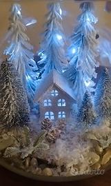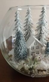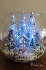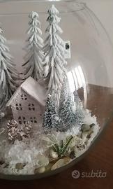 sfera in vetro con alberi innevati,casetta e neve