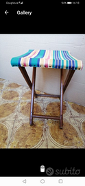 Vendo sgabello in legno, con seduta in tela molto resistente ma macchiata ed un pó sbiadita. Le misure sono : cm 33 larghezza seduta x cm 28 di profondità. L' altezza da terra è di cm 40. Solo consegna a mano. Vendo inoltre vecchia seggiolina bassa in legno con seduta da ripristinare ( vedi descrizione - foto). È tarlata, ma non credo necessiti di trattamento oramai. Solo consegna a mano(preferibilmente)