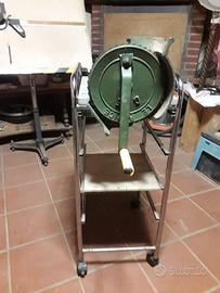 sgranatore per granoturco modello manuale perfettamente funzionante montato su telaio in acciaio