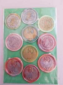 set da 10 sigilli autentici in ceralacca, autoadesivi, realizzati artigianalmente, a tema: antico egitto e archeologia. Ogni sigillo è dotato di pellicola biadesiva sul retro per poter essere attaccato su carta, stoffa, plastica e altri materiali. Ideali per lavoretti fai da te, scrapbooking, cardmaking, inviti e partecipazioni, feste, decorazioni, bomboniere, confezioni, pacchi regalo, segnalibri, segnaposto, lettere e corrispondenza, in occasioni quali baby shower, laurea, nascita, matrimonio, compleanno, festività, natale, pasqua ecc.