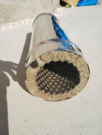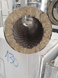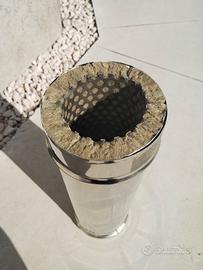 Silenziatore in Acciaio inox per impianti di aspirazione diametro 100 mm. x 500 composto da lamiera forata interna, isolamento in lana minerale e rivestimento esterno in lamiera inox con innesto maschio femmina diametro 150 mm. da poter innestare fra elementi monoparete in acciaio inox.