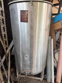 vendo silos per vino in acciaio inox capacità 500 litri. con coperchio, rubinetto, indicatore di livello esterno trasparente e treppiede. buono stato solo da pulire.