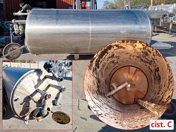 sistema di stoccaggio prodotti chimici usato, si tratta di una struttura completamente fatta in acciaio inox probabilmente 316 formata da 3 cisterne A-B-C coibentate sp. 3cm con capacità di circa 4000 litri che contenevano reciprocamente: acido nitrico, soda ed acqua. le prime due dispongono di serpentina per la gestione della temperatura con acqua glicolata mentre l'ultima è neutra.