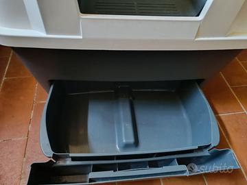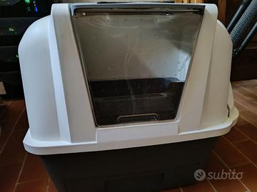 L'ingresso con porticina a spinta da parte del gatto, evita la fuoriuscita di rifiuti e trattiene la polvere. E' fornita di un filtro in carbone integrato che assorbe gli odori. Adatto per gatti di tutte le taglie. Costi di spedizione orientativi ed escludibili se zona Terni o Perugia