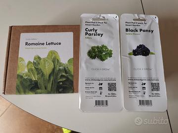 Smart Garden Click and Grow, le lattughe romane sono 7 capsule come da foto, il prezzemolo riccio 1 capsula e la viola che vedete in foto non è disponibile , vendo tutto insieme no articoli separati, non spedisco.