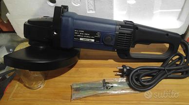 FERM Smerigliatrice angolare professionale 2200W - 230mm. Cavo di alimentazione in gomma 2 metri Marchio Ferm Materiale scocca ABS/Lega leggera - Cavo in gomma Alimentazione elettrica 220/240v 50/60Hz con cavo Potenza 2.200w Disco 230mm Le parti di alta qualità di questa smerigliatrice angolare garantiscono una lunga durata anche con un uso professionale e intensivo, Il peso di 6,4 Kg testimonia la robustezza di questo utensile. Libertà di movimento grazie al lungo cavo in gomma. Sicurezza: grazie al manico che può essere montato a sinistra, a destra e in alto e al cappuccio di protezione regolabile potrete lavorare in modo sicuro. Semplicità di sostituzione rapida e semplice dei dischi abrasivi grazie al blocco mandrino e alla chiave di serraggio in dotazione. La forma ergonomica permette un utilizzo comodo e semplice. Altezza utensile 16cm-Larghezza: 12cm/25cm con la protezione del disco-Lunghezza: 48cm La FERM mod.319595 professionale è una potente smerigliatrice angolare con avviamento "SOFT START". È progettata per un uso intensivo e ha una potenza in uscita non inferiore a 2200W. Questa smerigliatrice angolare è adatta a dischi con diametro di 230 mm. I dischi abrasivi sono facili e veloci da cambiare grazie al blocco del mandrino. Con questa smerigliatrice lavori sempre in sicurezza grazie alla maniglia laterale posizionabile a piacere sia a destra che a sinistra che in alto e al coperchio di protezione regolabile, l'interruttore di sicurezza previene accensioni indesiderate e può essere bloccato per comodità nell'uso continuo. Il cavo di alimentazione morbido in gomma lungo 2 metri offre una libertà di movimento ottimale. Idonea alla lavorazione del metallo, della pietra o dei materiali plastici. A seconda della mola montata, questa macchina può essere utilizzata per il taglio, sbavatura, levigatura, spazzolamento, rimozione ruggine, scavo nei muri x canalette elettriche o idraulic, taglio pietra, piastrelle, calcestruzzo, cemento armato