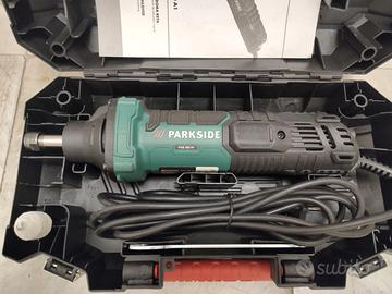 Smerigliatrice assiale Parkside,come nuova,usata poche volte,per frese con gambo da 6 mm e 3,2 con la riduzione in dotazione,compresa di valigietta ed istruzioni.