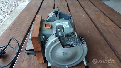 vendo smerigliatrice da banco combinata , dotata sia di una mola abrasiva che una spazzola metallica modello 09001 velocità 3000 giri/min. potenza 370 watt. tensione 220 volt. peso 8,8 kg.