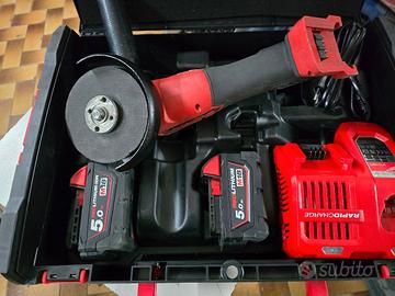 Smerigliatrice MILWAUKEE con rotostop disco da 125mm, 18V con due batterie da 5Ah perfettamente funzionante