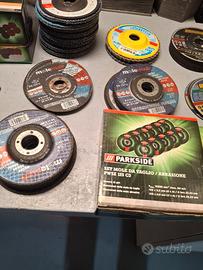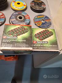 SMERIGLIATRICE PARKSIDE in ottime condizioni usata pochissimo, vendo perchè non la uso più da dieci mesi. Il prezzo della smerigliatrice è € 60,00 . Vendo 50 mole da taglio sia da ferro che da legno NUOVI MAI USATI per € 40,00. Si possono comperare anche separatamente e scegliere la quantità