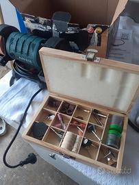 smeriliatrice da tavolo a corente nuova con tutti i suoi atrezzi per fare qualsiasi lavoro. marca Parkside.