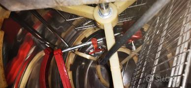 Smielatore motorizzato, in acciaio inox praticamente nuovo, porto 9 telaini tipo per mielario oppure 3 telai grandi. il motore ha 2 velocità e la possibilità di selezionare la direzione oraria o antioraria. inclusa manovella per rotazione manuale.