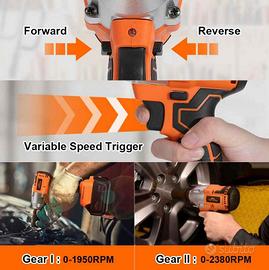 Potente e compatto, 330 Nm, avvitatore Smonta gomme con motore Brushless più duraturo e più potente dei motori a spazzole. Più sicuro (non fa scintille).