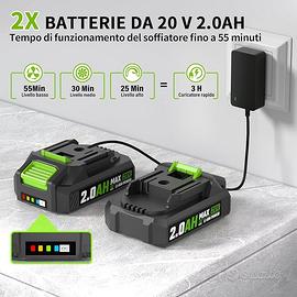 Soffiatore a Batteria con 2×2.0Ah,20V Soffiatore per foglie,ventola per foglie,leggero solo 1,4 kg,Leaf Blower 3 marce,interruttore turbo Max15000 giri/min,portata d'aria 240 km/h