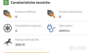 Vendo Soffiatore Aspiratore Trituratore 3in1 Black&Decker BEBLV301QS come nuovo, usato due volte, per inutilizzo, acquistato nuovo 7 mesi fa ed utilizzato una volta.; pratico; leggero e facile da usare, potente. Di seguito le caratteristiche: Il soffiatore aspiratore-trituratore Black & Decker da 3000W è tra i più professionali della categoria soffiatori Black & Decker, oltre ad avere tutte le caratteristiche al top, questo è più completo perché possiede: