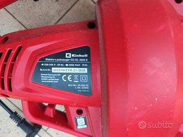 Soffiatore aspiratore elettrico 3000 watt con sacco raccoglitore, marca Einhell. Usato una sola volta per verificarne il funzionamento.