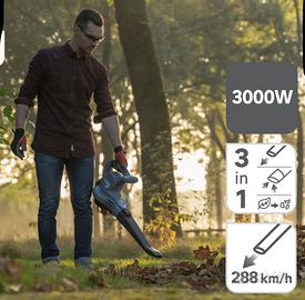 Vendo soffiatore–aspiratore–trituratore elettrico Sterwins EVB2‑4 da 3000W, perfettamente funzionante e ideale per la pulizia di giardini, vialetti e cortili. Caratteristiche principali Potenza: 3000 W 3 funzioni: soffia, aspira e tritura Riduzione foglie: rapporto di triturazione elevato (ideale per ridurre il volume nel sacco) Sacco di raccolta incluso Regolazione della velocità dell’aria Alimentazione elettrica (cavo) – nessuna manutenzione del motore, nessun odore, nessun carburante Condizioni Usato poco, tenuto bene Testato prima della vendita Nessun difetto strutturale o funzionale