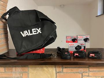 Fornisco 2 batterie originali Valex (lithium 18V 4 Ah) e un caricabatterie originale Valex, tutti e tre nuovi.