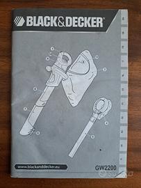 Soffiatore Black & Decker modello GW2200 . 2200 W alimentazione cavo elettrico. Soffiatore , aspiratore , trinciatutto. Funzionante ed in ottime condizioni con sacco integro anche se di aspetto più usurato